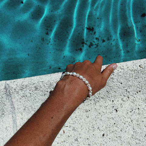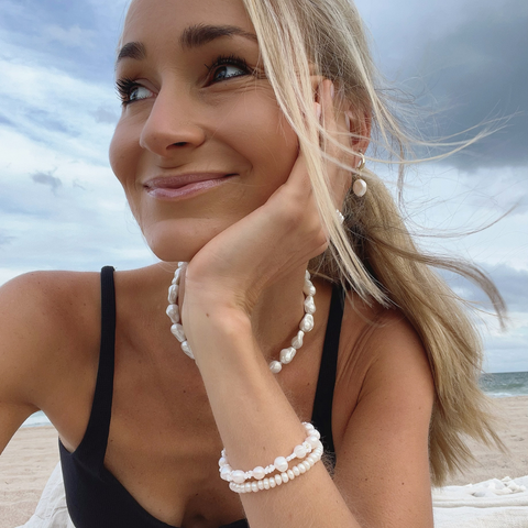 Made with 100% natural freshwater pearls, glass seed beads, and a 24k gold-plated clasp on a waterproof string, ZOE will be your bestie for a long time.