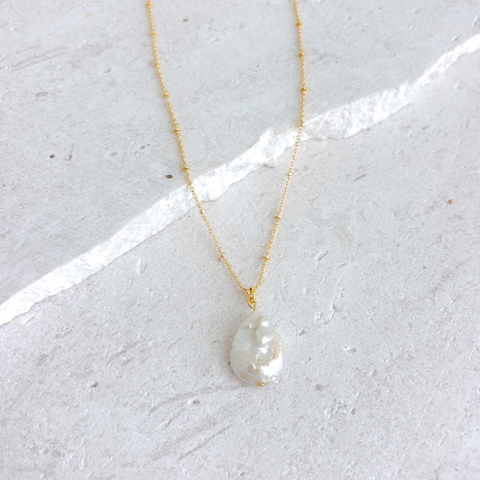 GOLD CHAIN NECKLACE ✿ OVAL PEARL DROP
