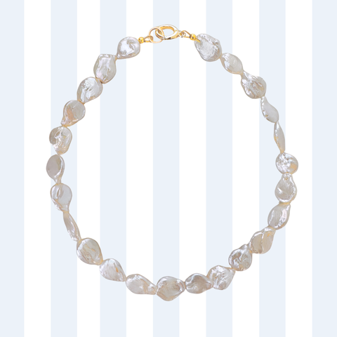 She's chic, she's bold, she's got class! Introducing SAMANTHA, inspired by our stunning friend Sam Cutler (@thefitfatale). This timeless piece, handmade with flat, irregularly shaped natural freshwater pearls, is designed to elevate every look.