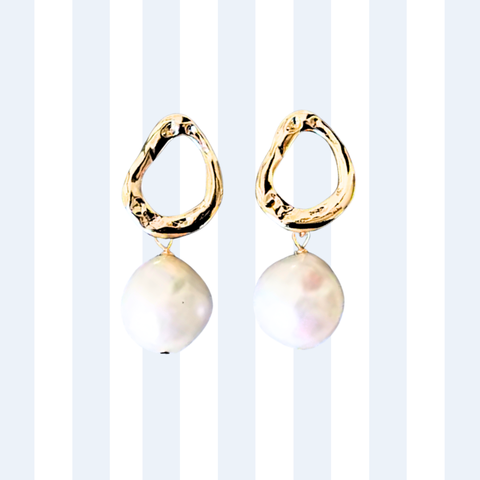 Introducing HARPER, our timeless pearl earrings handmade with natural baroque freshwater pearls and 14k gold-filled studs. The hammered texture adds a touch of retro elegance, making HARPER look extra uniq(ue) - and you too!